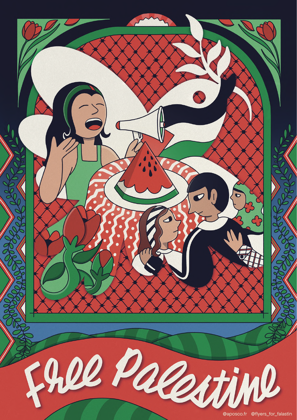 Flag, Keffiyeh, Poppy flower, Watermelon