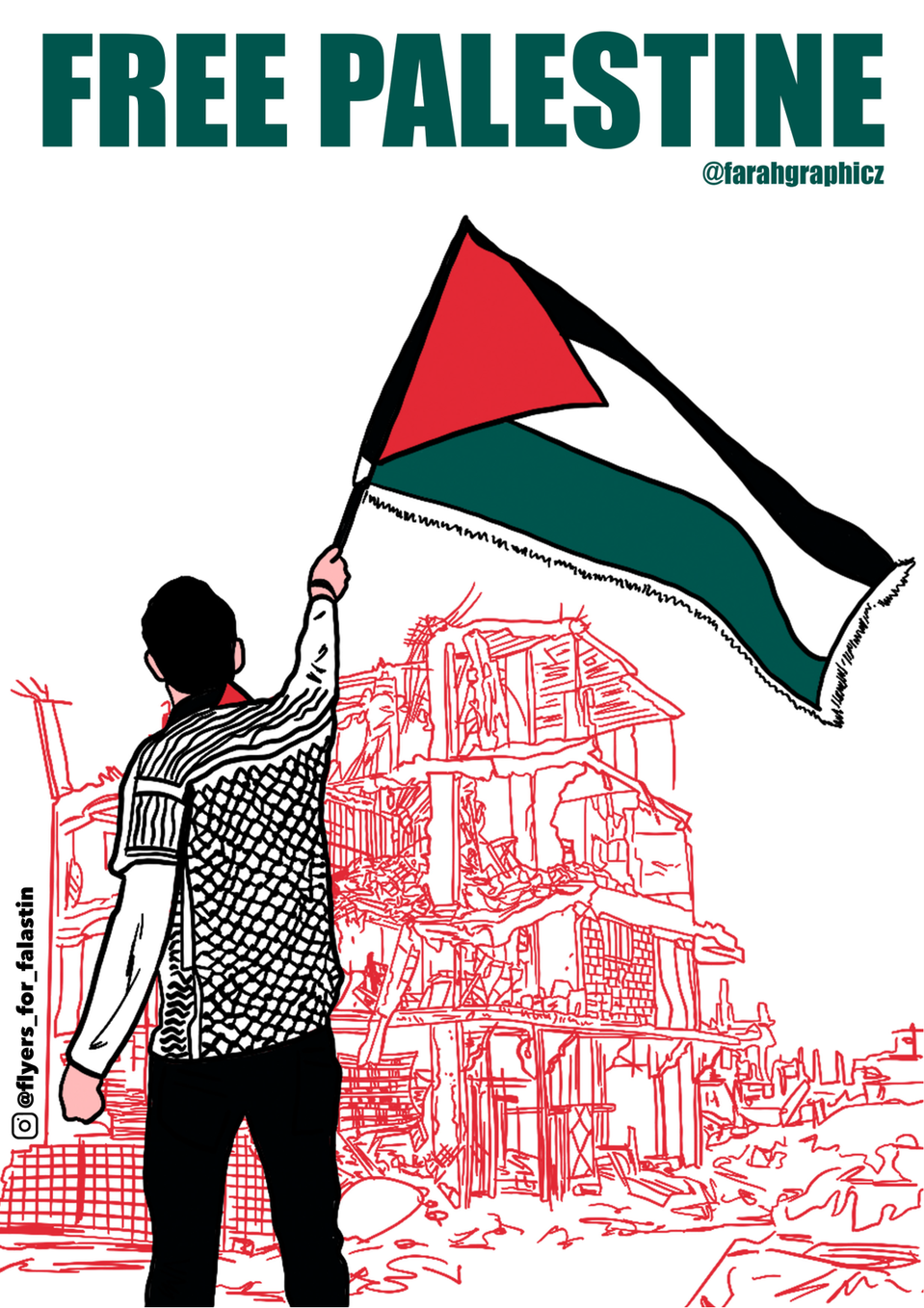 Destroyed buildings, Flag, Keffiyeh