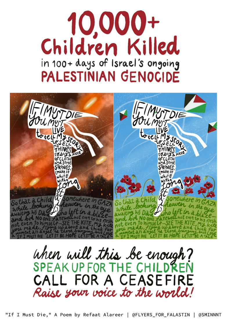 | Themes | Calls to action, Children, Genocide, Liberation/freedom, Palestinian prominent figures, Palestinian resistance, People, Raise awareness, Resistance, The Cause, Zionist atrocities |