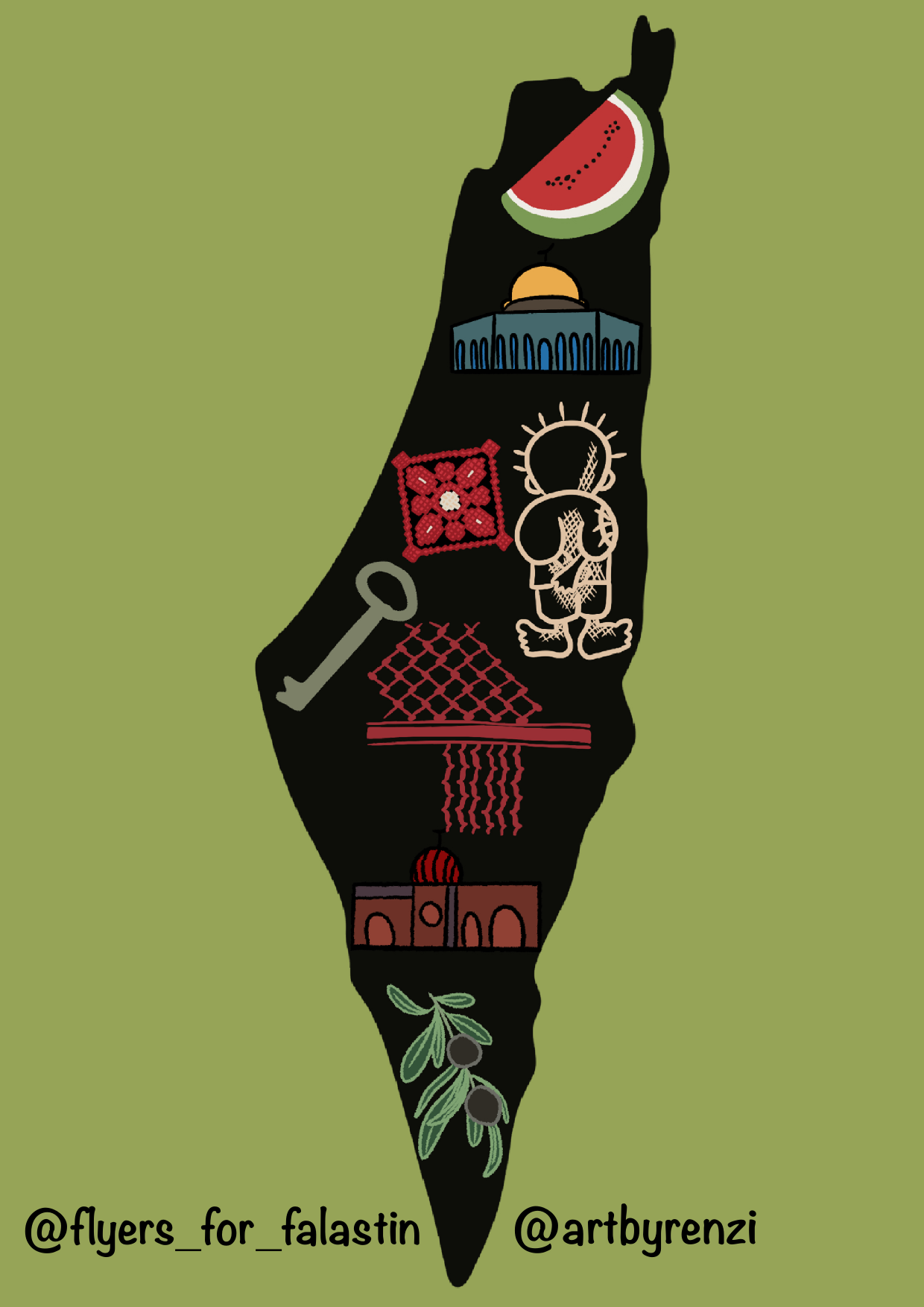 Al Aqsa, Handala, Map, Olives, Tatreez, Watermelon