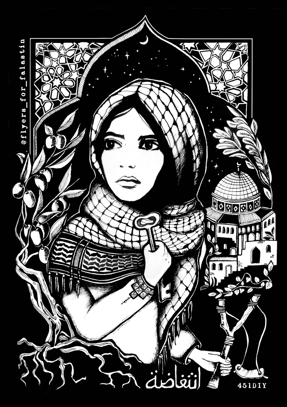 Al Aqsa, Black & white posters, Keffiyeh, Key, Olives