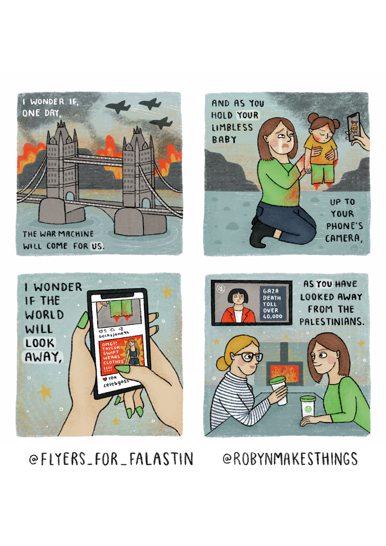 | Themes | Aggressors & complicit actors, Children, Interconnected struggles, Mechanisms enabling zionist atrocities, People, Silence, Silent/disengaged people |