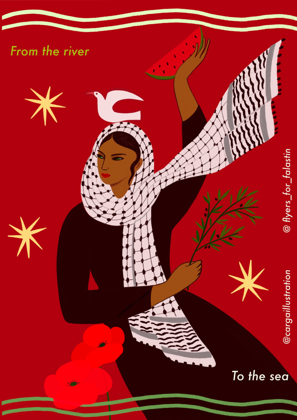 Dove, Keffiyeh, Poppy flower, Watermelon