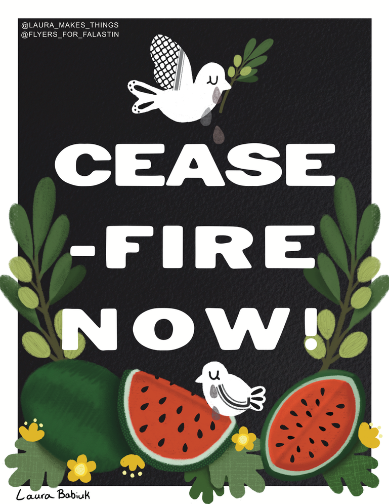 Dove, Flowers, Keffiyeh, Olives, Watermelon